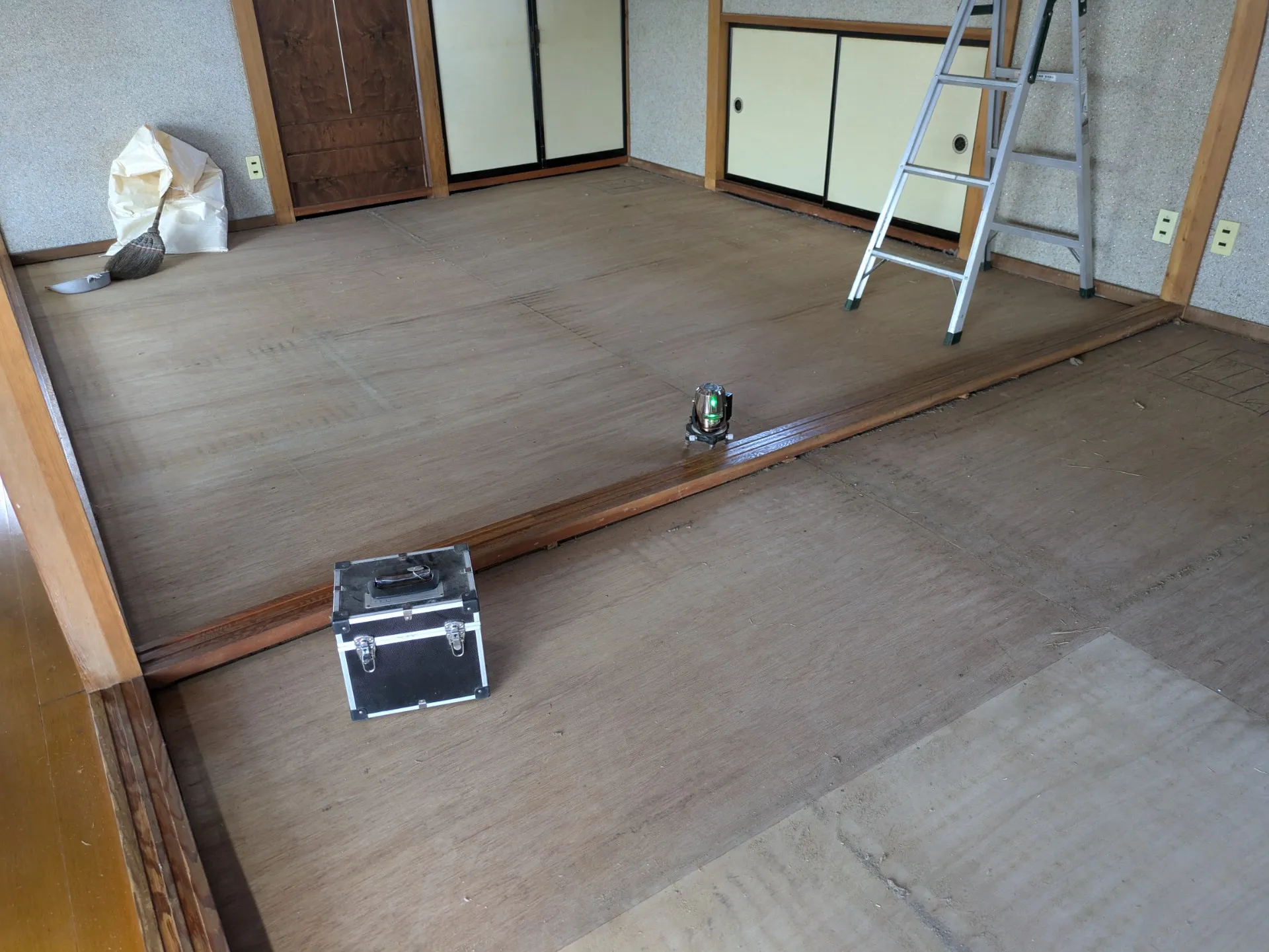 上記写真は、1階ゲストルームと二階の畳撤去後の写真です。